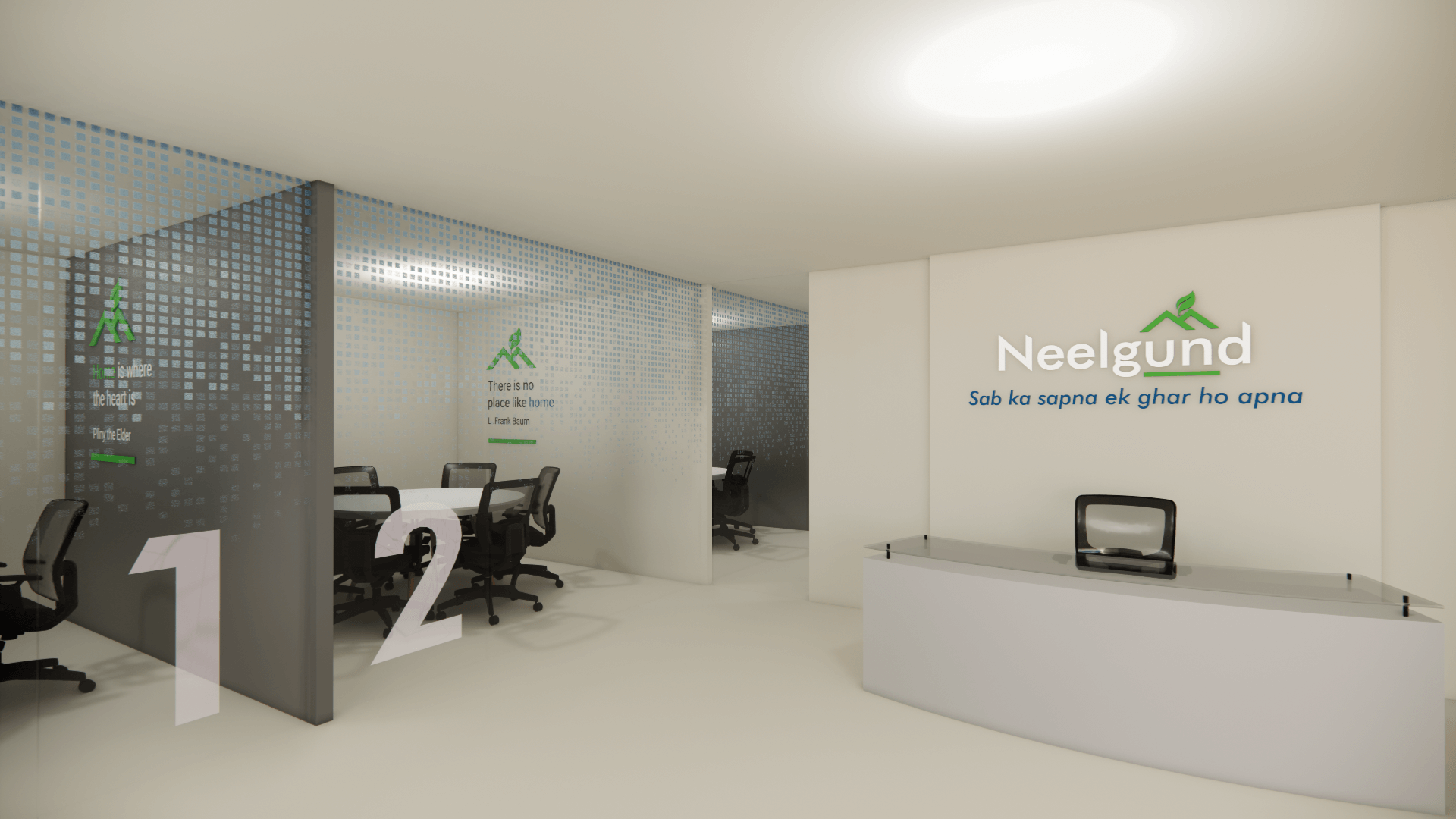 To further bring the brand to life, we conceptualised and designed a series of thematic illustrations and environmental graphics for their office interiors. Cabins feature inspiring quotes, while meeting rooms explore the idea of ‘home as an emotion’—creating a space that’s not just visually consistent, but emotionally resonant.